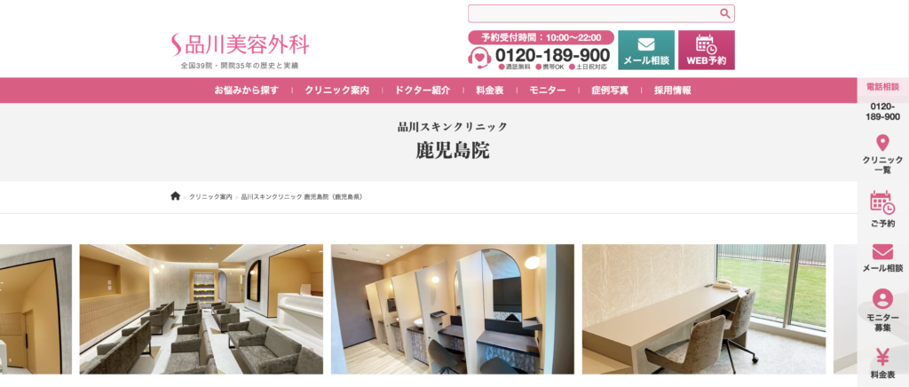 品川スキンクリニック鹿児島院は、朝10時から夜19時まで休診日なしで、利便性が高いクリニックです。