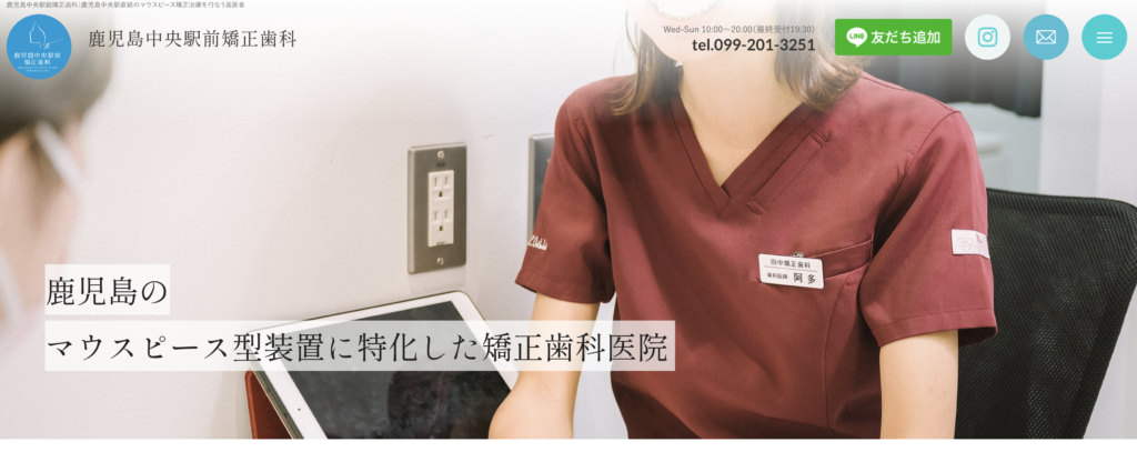 鹿児島中央駅前矯正歯科は、田中矯正歯科を本院とする、マウスピース矯正治療に特化したクリニックです。